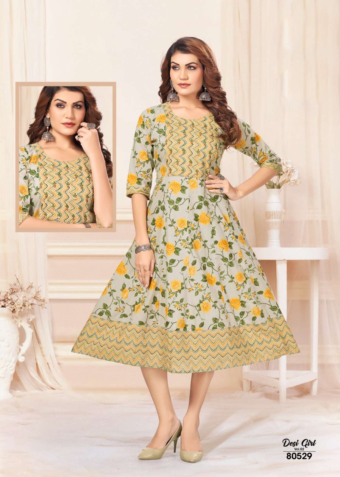 Looking for DESI GIRL BUY MAYRA JAIPURI CAMBRIC COTTON WHOLESALE ONLINE LOWEST PRICE KURTIS GOWN SETS Full Catalouge at Best Price? Buy Now DESI GIRL BUY MAYRA JAIPURI CAMBRIC COTTON WHOLESALE ONLINE LOWEST PRICE KURTIS GOWN SETS at Wholesale Rate of Rs 3300 with Total 6 from authroized dealer and supplier of Devyani Fashion Brand. Cost of Each piece is just only Rs 550 which is very low and affordable price to resale the product in your retail store. Devyanitextileexports is Surat based Wholesale Supplier & Dealer of Devyani Fashion Brand. Click on Brand name to Know more about BELLIZA Brand's products.